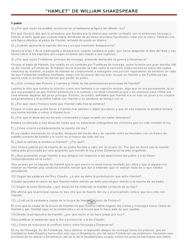 Preguntas Y Respuestas Hamlet Pdf Personas Science